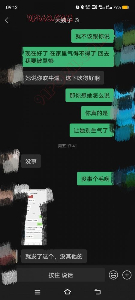 好啊 兄弟一言 真不错啊 告诉你最新进展啊 前天给她发消息刺激她 她故意发给我老婆 把我们敏感的聊天记录删了 感觉她是在试探我老婆的反应 我之前跟她说我多厉害多厉害 我老婆天天想要 不要就睡不着 她就把那一段天天想要发我老婆看 我老婆说我吹牛 她就说我牛吹大了 强调了三次 说我吹牛 碍于她老公在她身边 有点不好发消息 最近又放假 小孩都在