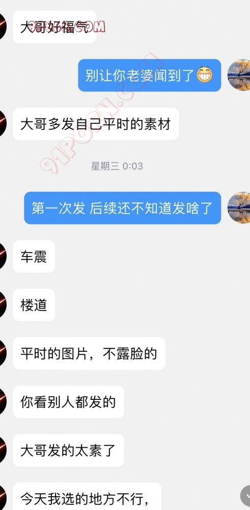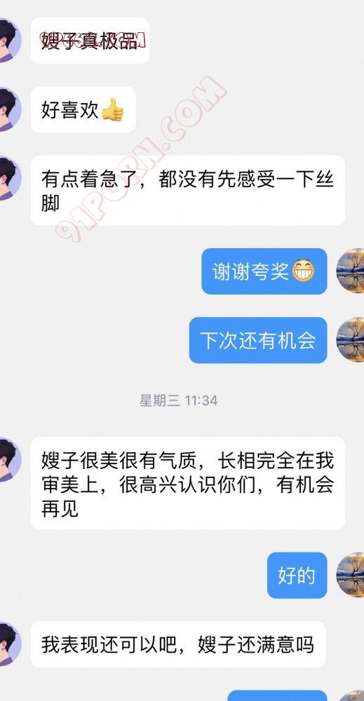 男人三:这是个开吊车的小伙子。也比较内向的男人。找了个空旷的地方,一大片野地。喵女士穿着老公喜欢的玩露出的衣服,无袖款,两边袖口大到能看到内衣的款式和颜色。男人些许紧张,说嫂子很漂亮。然后当面给他脱下丝袜交给他。看了一下喵女士的脚。聊了一会天,说自己老婆看的紧,看你们比较真实,在网站里被骗了很多次。m先生说我们也是第一次,想玩玩两个人的情调。聊天氛围很轻松,走了之后,他问m先生,嫂子是不是专门化妆了?m先生说,没有化,只是种了睫毛,其他没有化。然后又说,嫂子的袜子体香。轻松愉快的结束了此次见面。